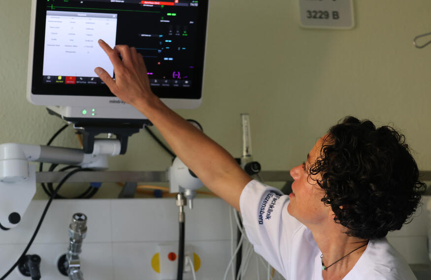In unserer Phase-B-Station stehen insgesamt 20 Betten zur Verfügung. Davon befinden sich 6 Betten im intensivmedizinischen Überwachungsbereich mit entsprechendem Monitoring, Sauerstoffversorgung und Kreislaufüberwachungsgerät für Patienten der Phase B mit: