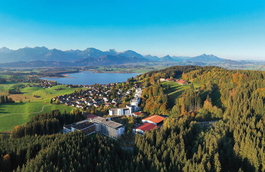 Die herrliche Lage der Klinik inmitten der Natur oberhalb des Hopfensees bietet den Patienten überdies die Möglichkeit zu zahlreichen Aktivitäten an der frischen Luft sowie ein zusätzliches Plus an Erholung und Entspannung.